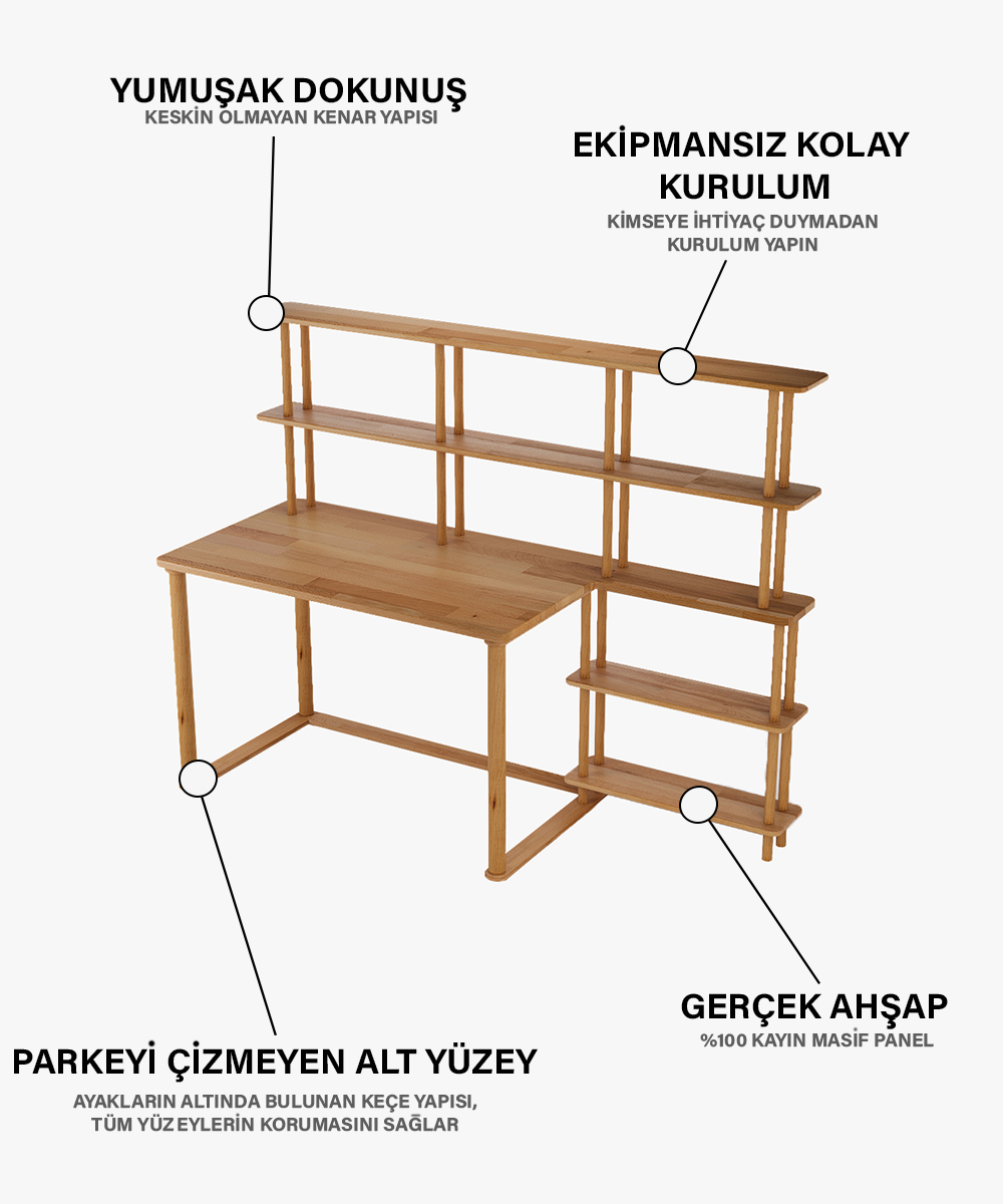 - Yüksek nemli ortamlardan uzak tutunuz. Ahşap doğal yapısı gereği çalışabilir (genleşme veya daralma gösterebilir).